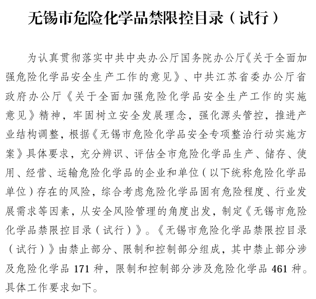 其次各地政策存在些許差異,部分地區(qū)對危化證經(jīng)營范圍有所限制,就比如無錫市發(fā)布的《無錫市危險(xiǎn)化學(xué)品禁控目錄(試行)》